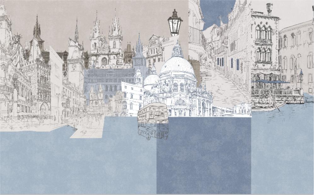 儿童房 | 卡通手绘威尼斯儿童房壁画背景墙MT-434