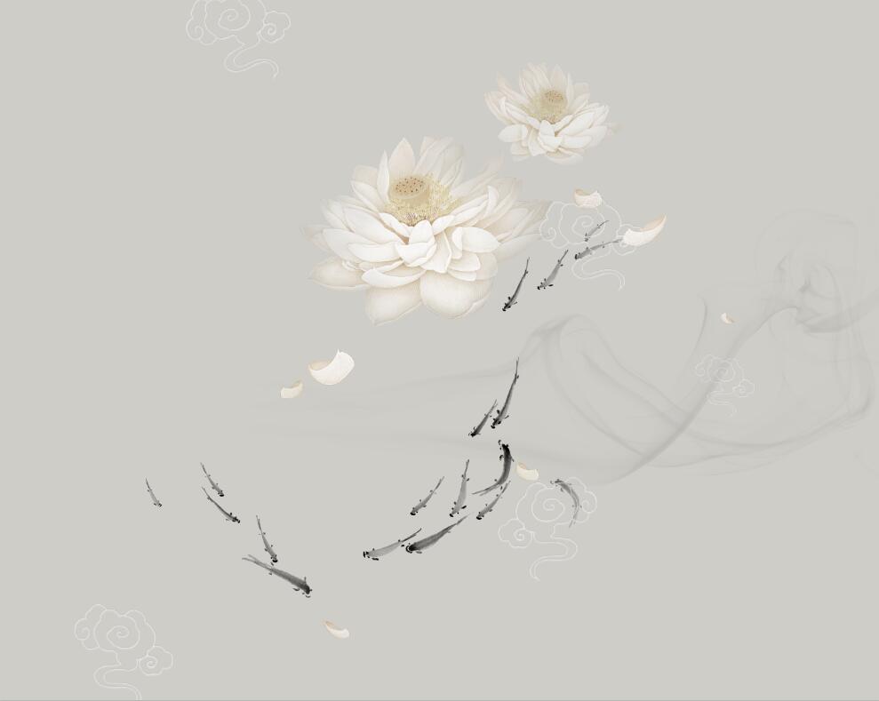 每日更新 | 新中式水墨手绘荷花鱼群背景墙MT-381