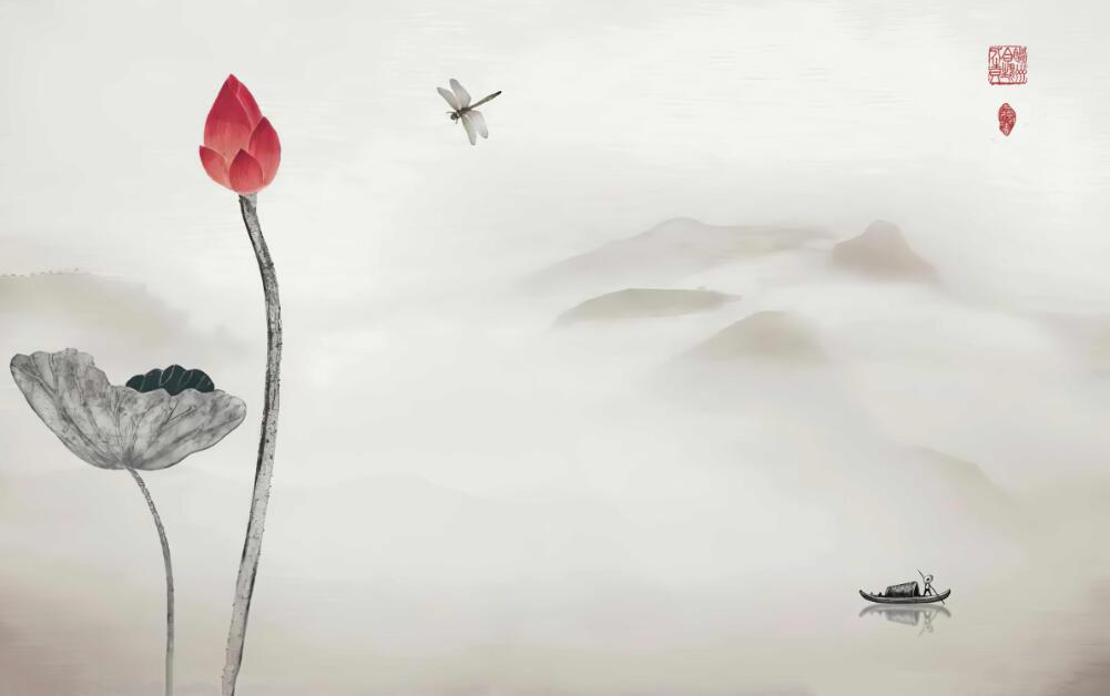 每日更新 | 新中式水墨手绘荷花鱼群背景墙MT-382