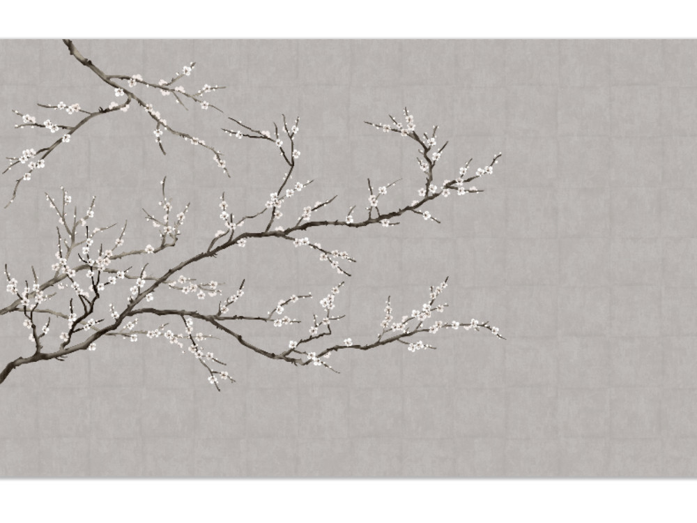 每日更新 | 手绘新中式工笔画梅花背景墙MT-386