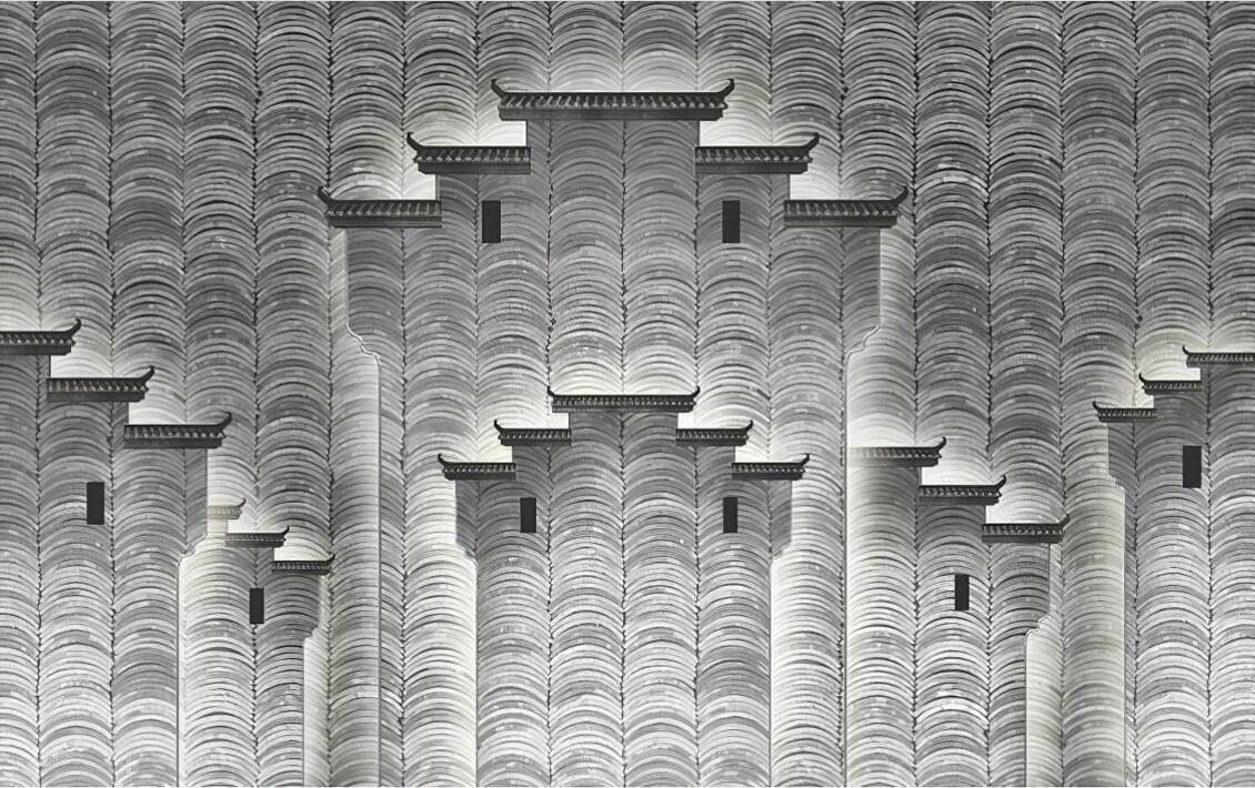 每日更新 | 新中式徽派建筑群壁画背景墙MT-437