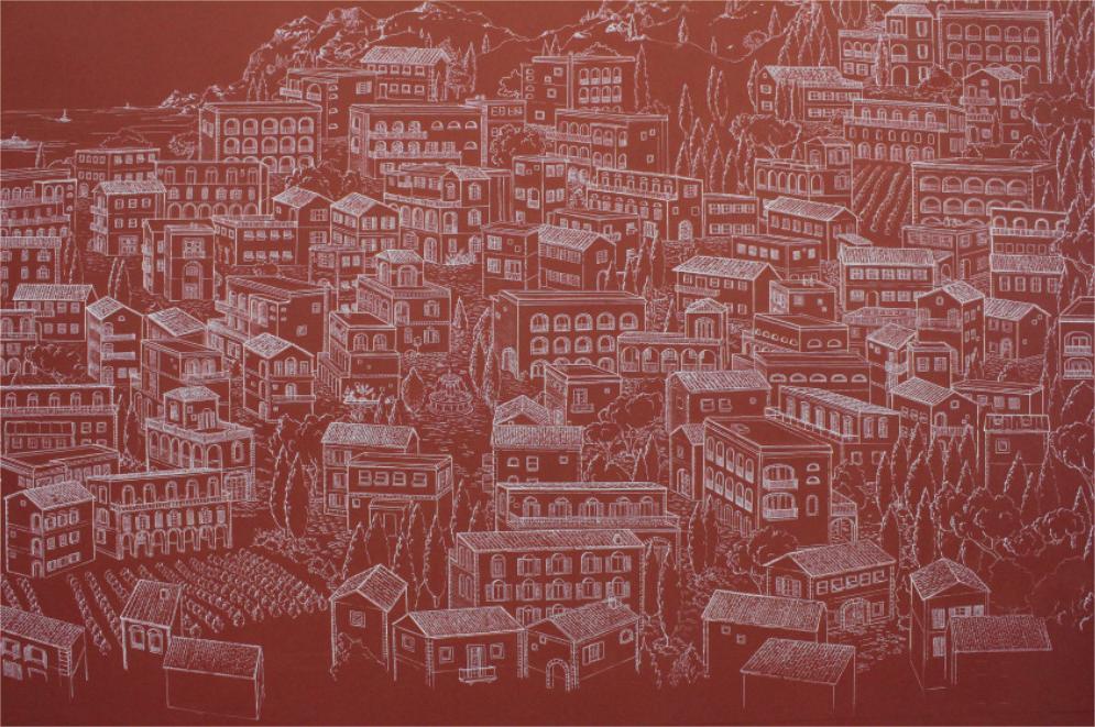 每日更新 | 新中式手绘线条建筑壁画背景MT-455