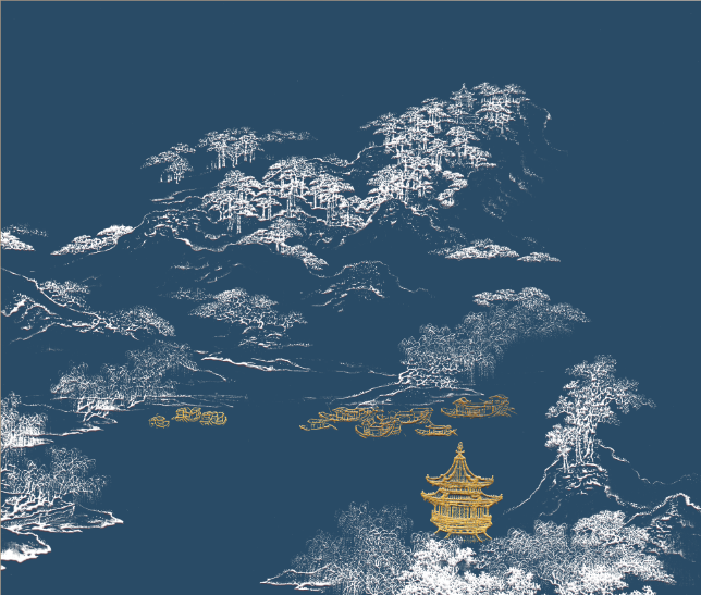 • 山水 楼阁 建筑 花 鸟 鱼 玉兰 梅花 荷花 银杏 古画 鎏金 印加绣