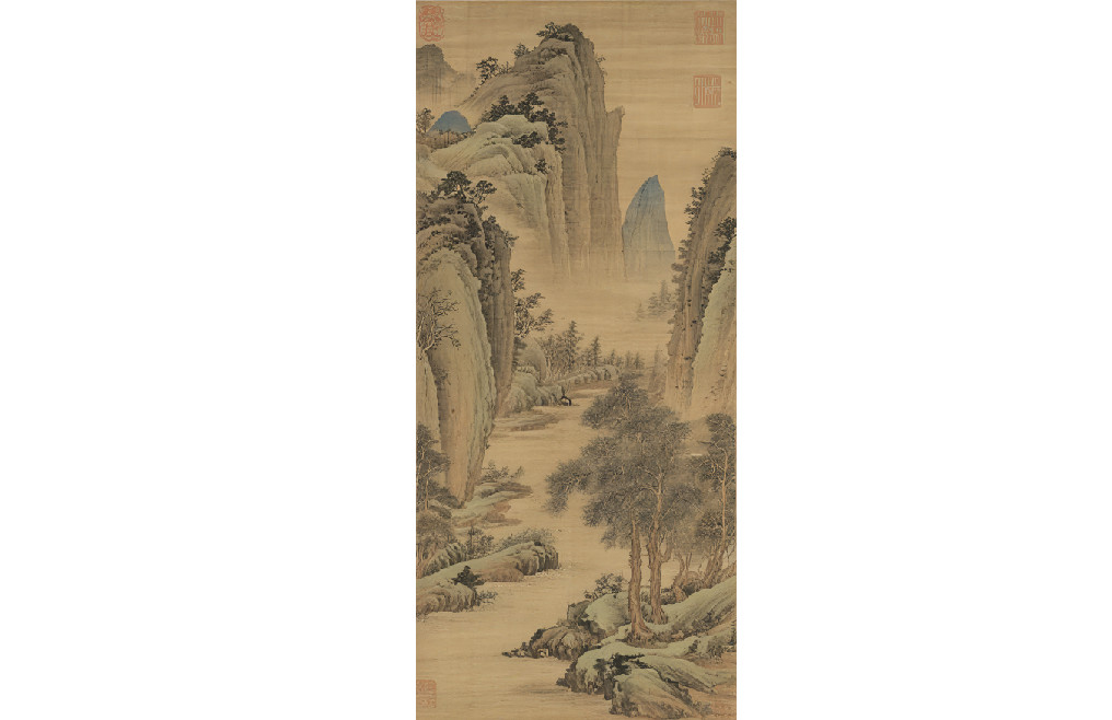 • 山水 楼阁 建筑 花 鸟 鱼 玉兰 梅花 荷花 银杏 古画 鎏金 印加绣