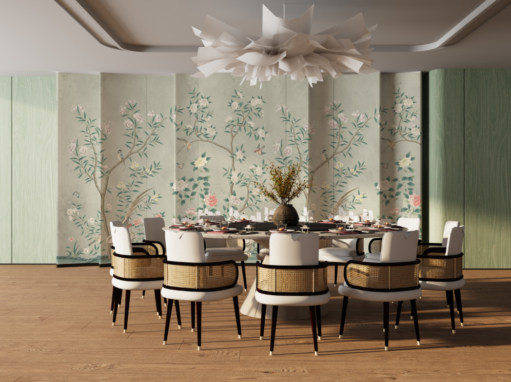 中式 | 卓越风华 新中式手绘百鸟朝凤花鸟壁画背景墙WRT-028