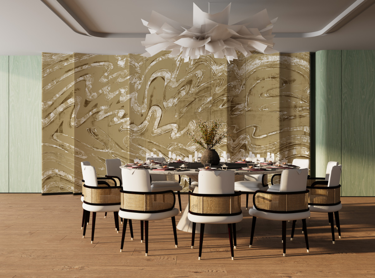 中式 | 卓越风华 新中式手绘银杏叶鎏金壁画背景墙WRT-009