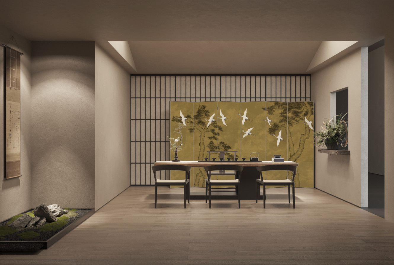中式 | 卓越风华 新中式手绘飞鹤壁画背景墙WRT-027