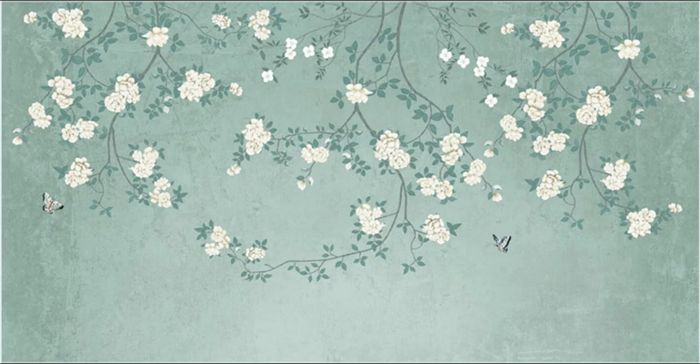 中式 | 新中式手绘高清花鸟蝴蝶背景墙ZHM-065