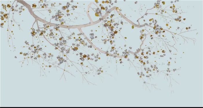 中式 | 新中式麻纹简约梅花花鸟背景墙ZHM-240