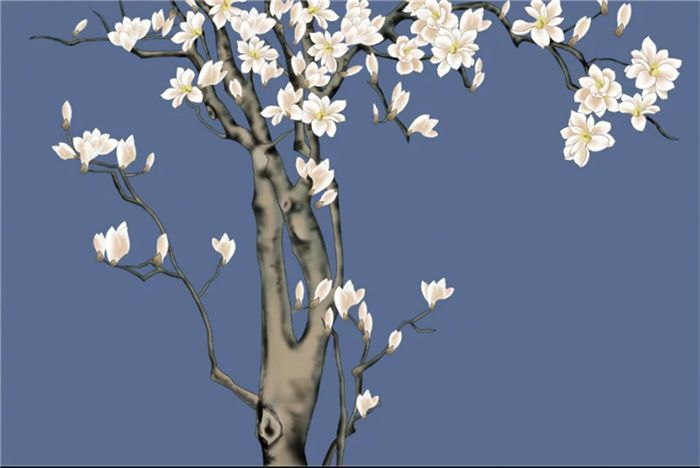 中式 | 新中式玉兰花简约花鸟背景墙ZHM-109