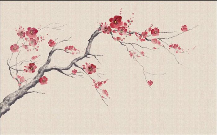 中式 | 新中式高清麻纹梅花花鸟背景墙ZHM-033