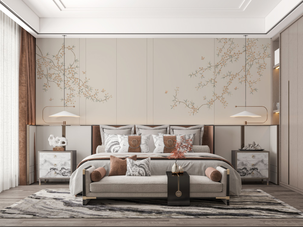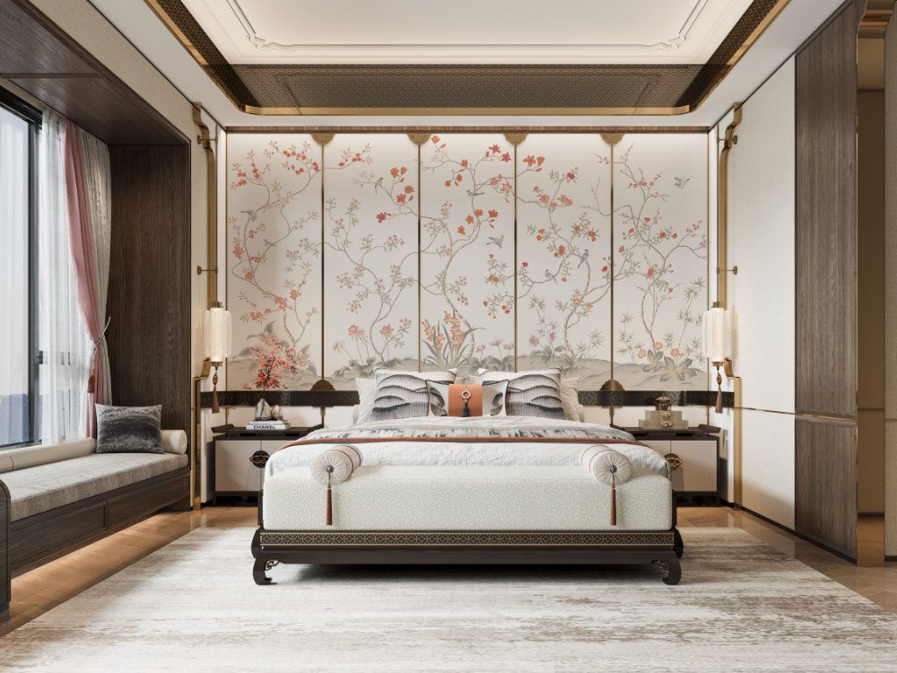 中式 | 卓越风华 新中式手绘花鸟简约壁画背景墙WRT-006