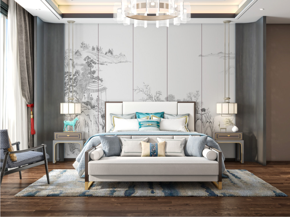 中式 | 现代简约意境客卧玄关壁画背景JYE-017