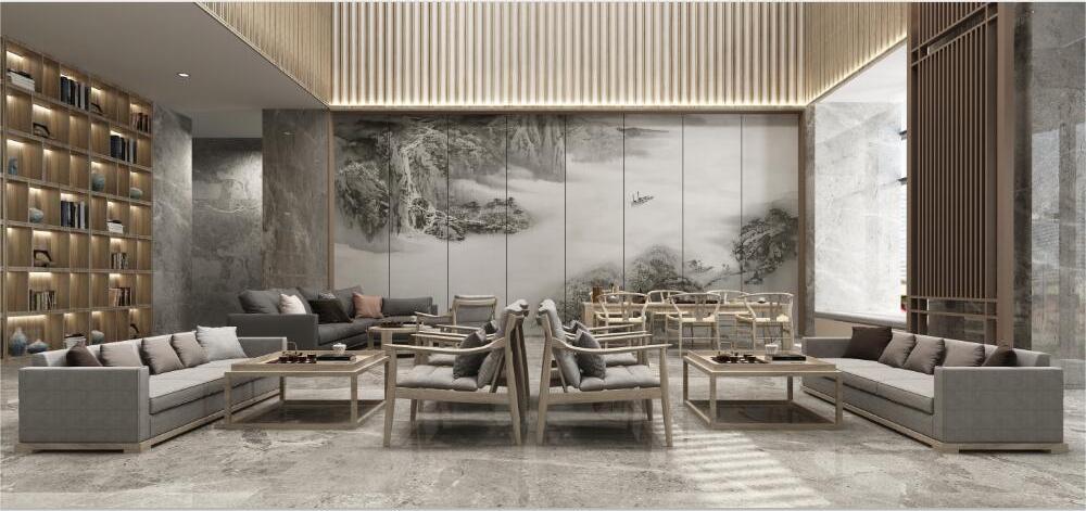 中式 | 北欧现代风线条建筑大理石效果客卧玄关壁画背景JYE-027-01