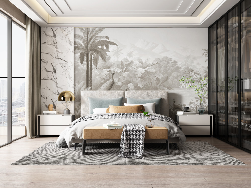 现代 | 卓越风华 现代轻奢风爱马仕植物花草背景墙WRT-018-01