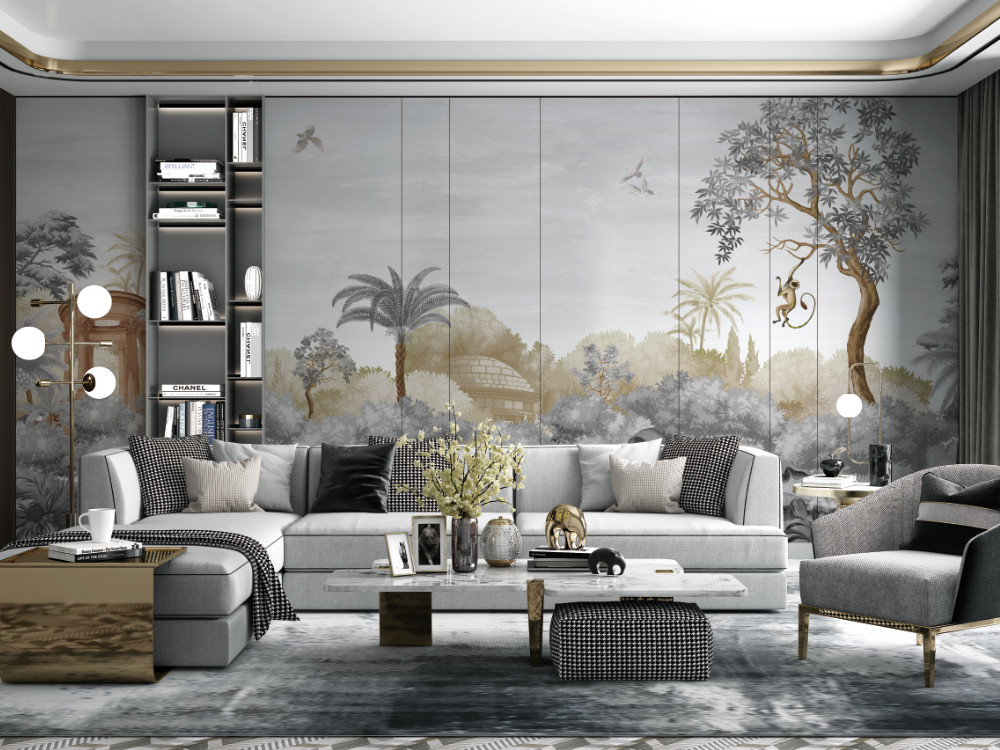 布艺墙板 | 现代轻奢西洋风树林电视客厅墙咖背景墙WKL-329