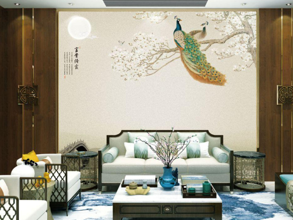 刺绣 | 新中式千姿百态孔雀印加绣壁画背景墙QS-G557