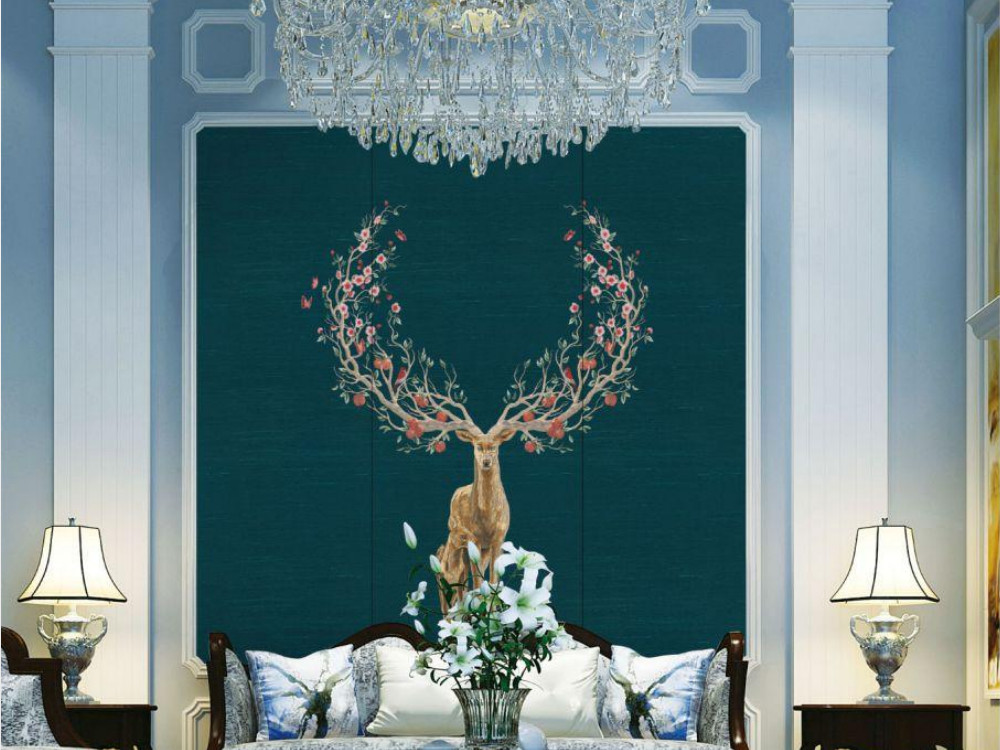 刺绣 | 一鹿有你印加绣玄关壁画背景墙QS-G507