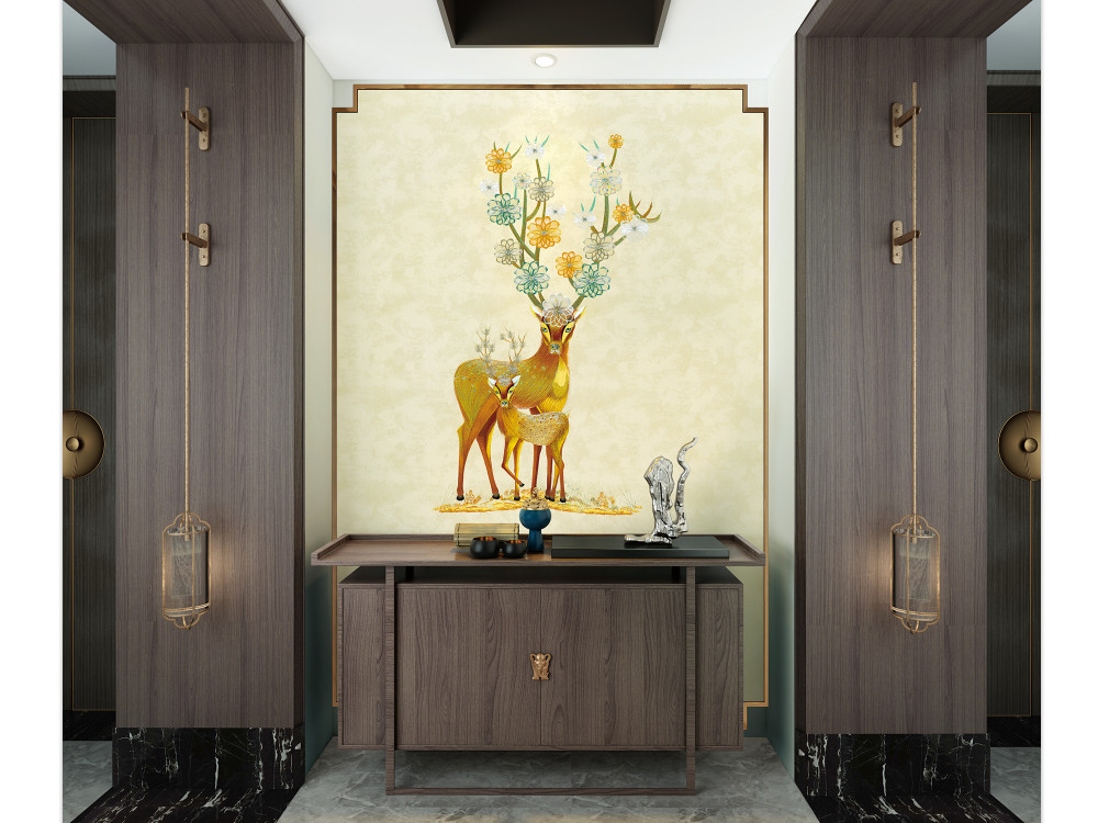 刺绣 | 北欧风麋鹿玄关独绣背景JX-406