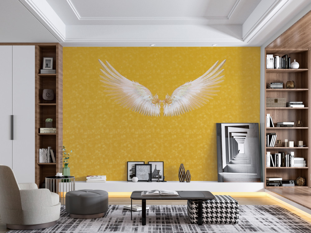 刺绣 | 现代简约天使之翼定尺独绣背景墙JX-326