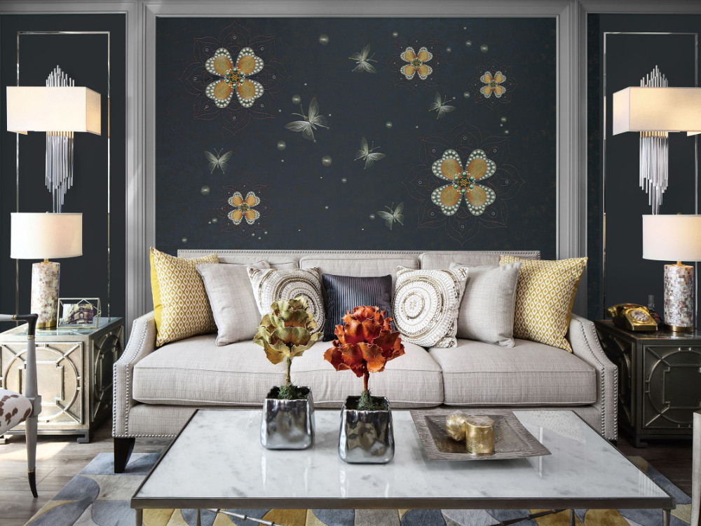 刺绣 | 轻奢风暗纹花纹定尺独绣背景墙JX-343