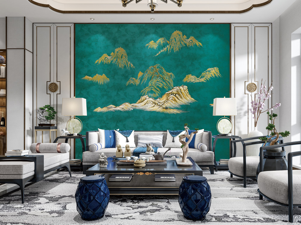 刺绣 | 新中式情寄山水间定尺独绣背景墙JX-301