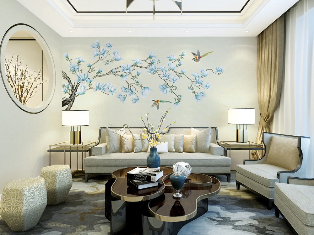 刺绣 | 新中式玉兰花定尺独绣背景墙JX-307