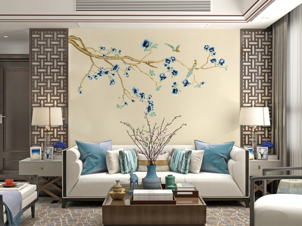 刺绣 | 新中式花鸟独绣背景墙JX-202