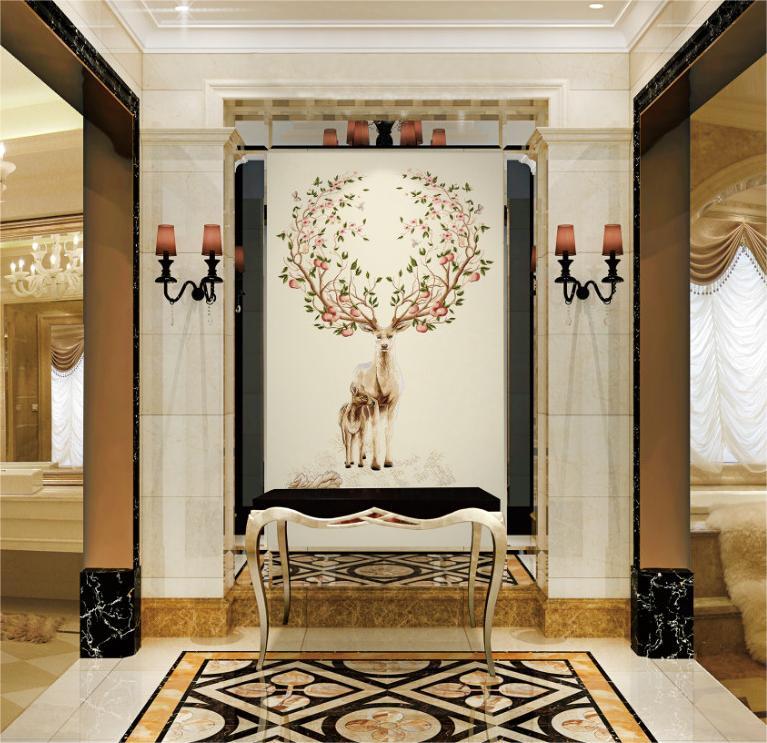 刺绣 | 现代简约北欧风麋鹿独绣背景墙JX-215