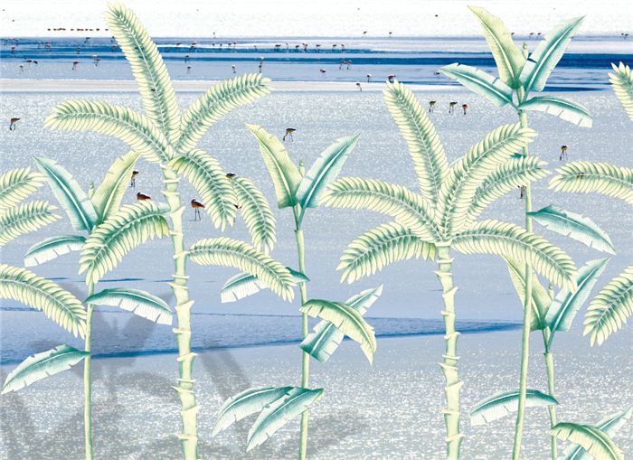 手绘 | 智绘大师超手绘欧式花园中世纪热带丛林背景墙椰子树SH-44